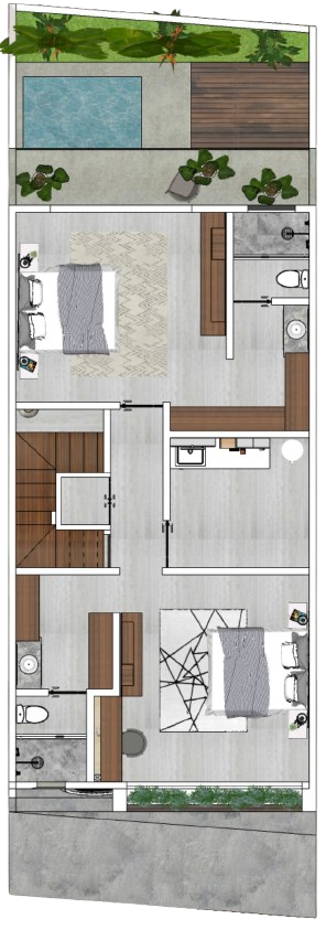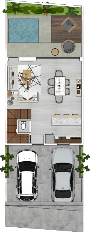 Nuestros townhouses han sido diseñados pensando en tu comodidad, cuidando cada detalle tanto exterior como interior, con acabados de lujo como madera natural, porcelanatos de gran formato, granitos y chukum hecho artesanalmente. Con espacios amplios y ventanales ubicados estratégicamente para aprovechar la luz y ventilación natural.